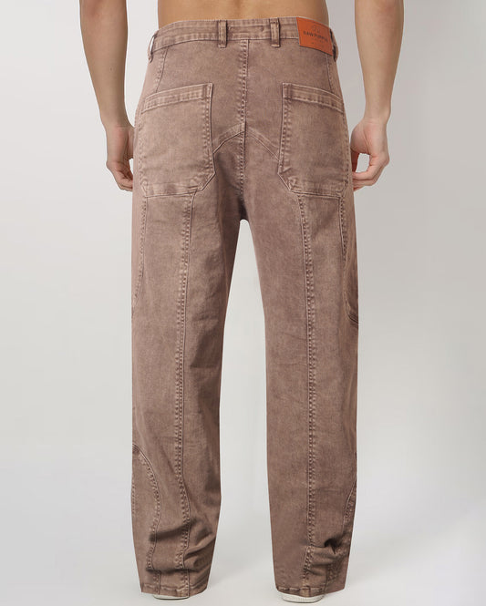 Brown Knee Cut Panels Unisex Acid Wash Denims