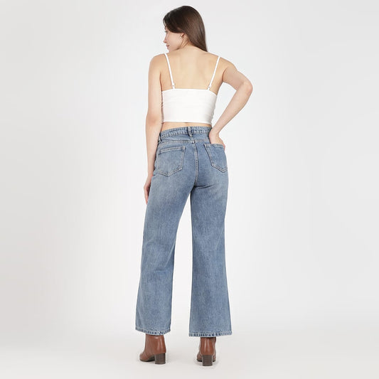 Brown Knee Cut Panels Unisex Acid Wash Denims