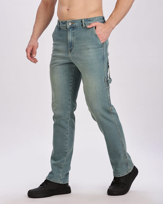 Blue-Grey Yellow Tinted Men's Bootcut Denim